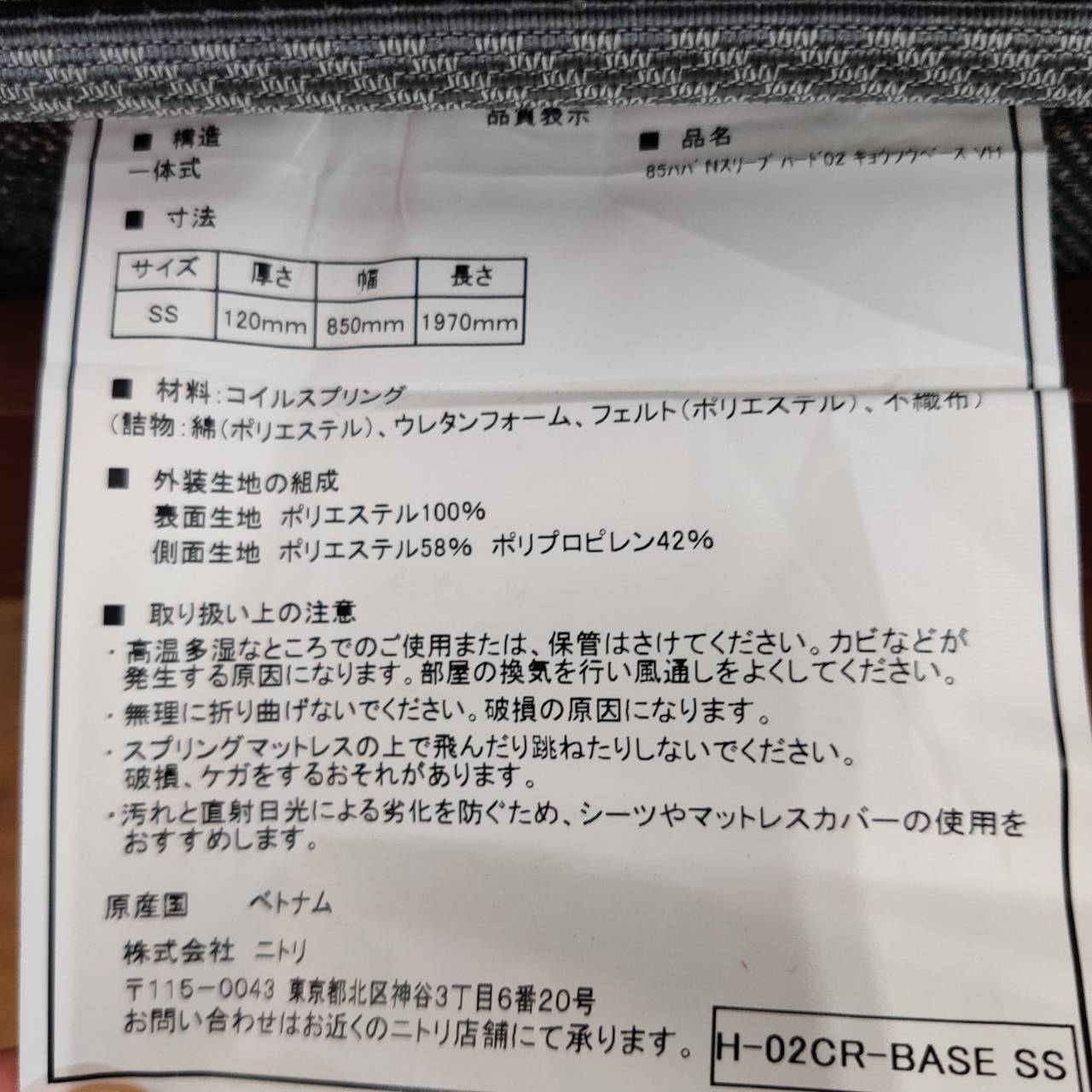 マットレス:ニトリ Nスリープ ハード / H3-02CR 2層マットレス