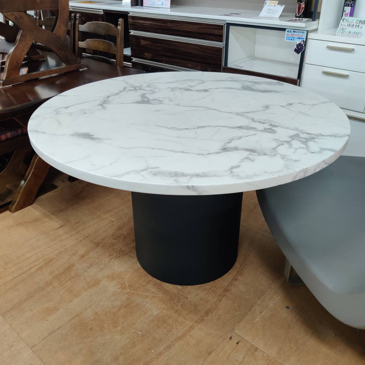 こちらは大理石天板の存在感が際立つラウンドテーブル。