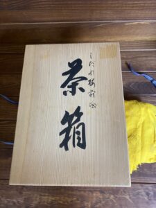 本品は、輪島塗による利休茶箱で、しだれ桜の蒔絵が美しく施された一品です。輪島漆器(輪島塗)は、日本を代表する漆芸技術であり、石川県能登地方の伝統工芸として評価されています。利休茶箱形式は、茶道において風情と格を兼ね備えた形式で、茶席での扱いにも適します。蒔絵(まきえ)技法は漆で文様を描き、その上から金粉・銀粉などを蒔き付けて文様を浮かび上がらせる技法で、熟練した職人技が求められます。しだれ桜の意匠は、春の風情を感じさせ、茶席を華やかに演出する趣があります。