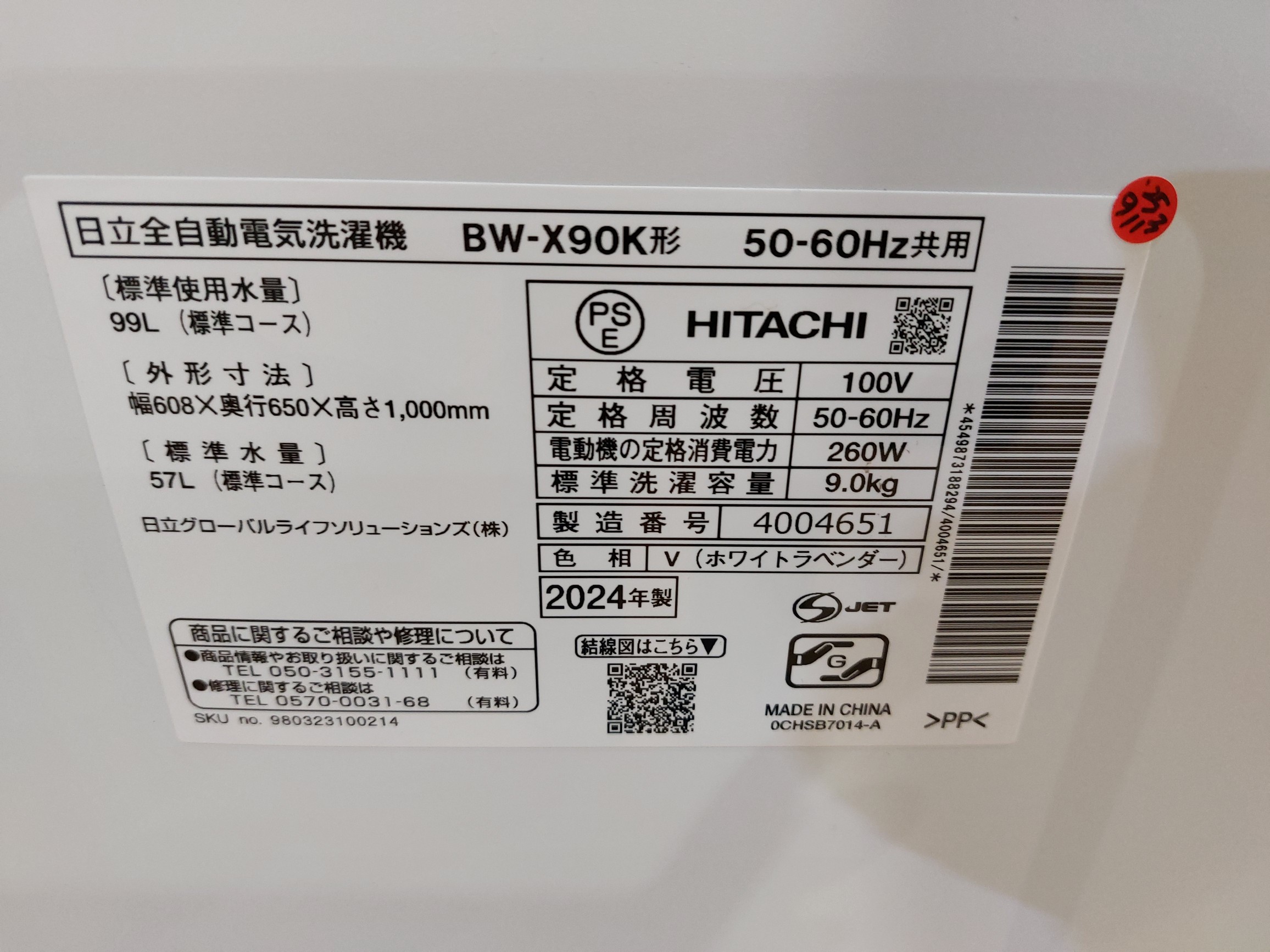 日立(ヒタチ)/縦型/洗濯機 BW-X90K