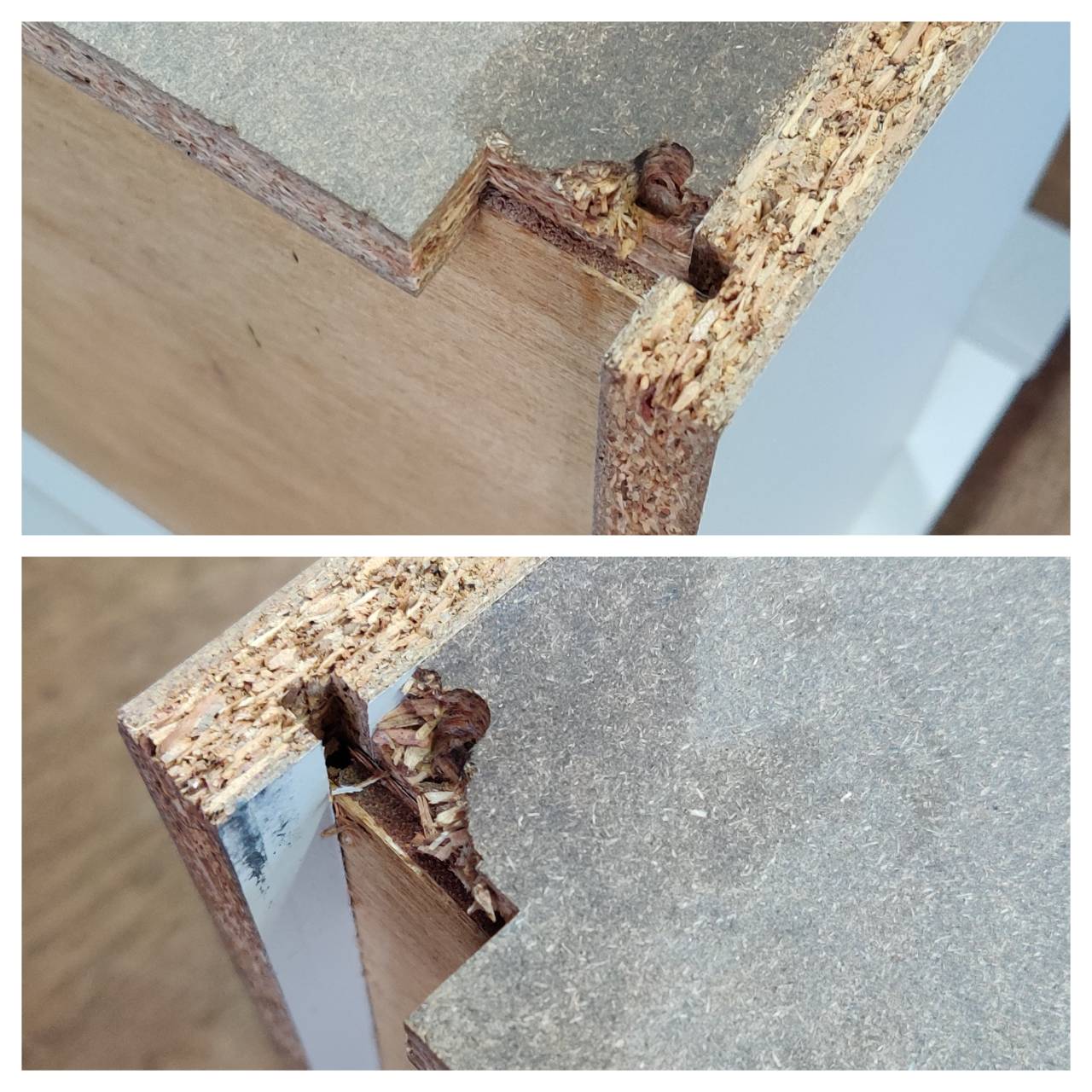 一番下の引き出しの奥下、レールに引っかかる部分に3ヶ所破損あり。