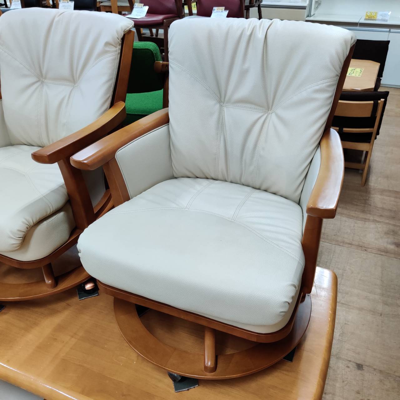 ダイニングチェアは、少ないスペースでもテーブルへの出入りや方向転換が簡単な回転式。