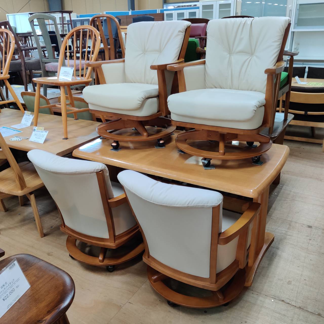 商品名 : ダイニング5点セット キャスター肘付回転チェア