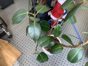 やや丸みを帯び勢いよく立ち上がった葉は勢いのある印象です。葉は厚みがある革質で、濃い緑色で光沢があります。