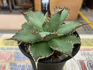 アガベ・チタノタ「フィリグリー」は、繊細かつ芸術的な鋸歯(きょし)を持つ人気の園芸種です。