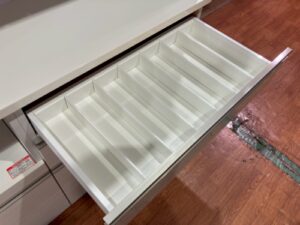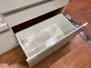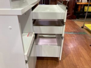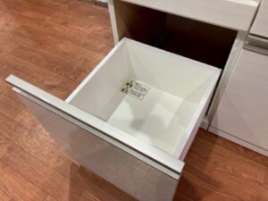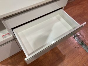 下台の収納引き出しはスムーズな開閉と最後は静かにゆっくり閉まるソフトクローズレール。