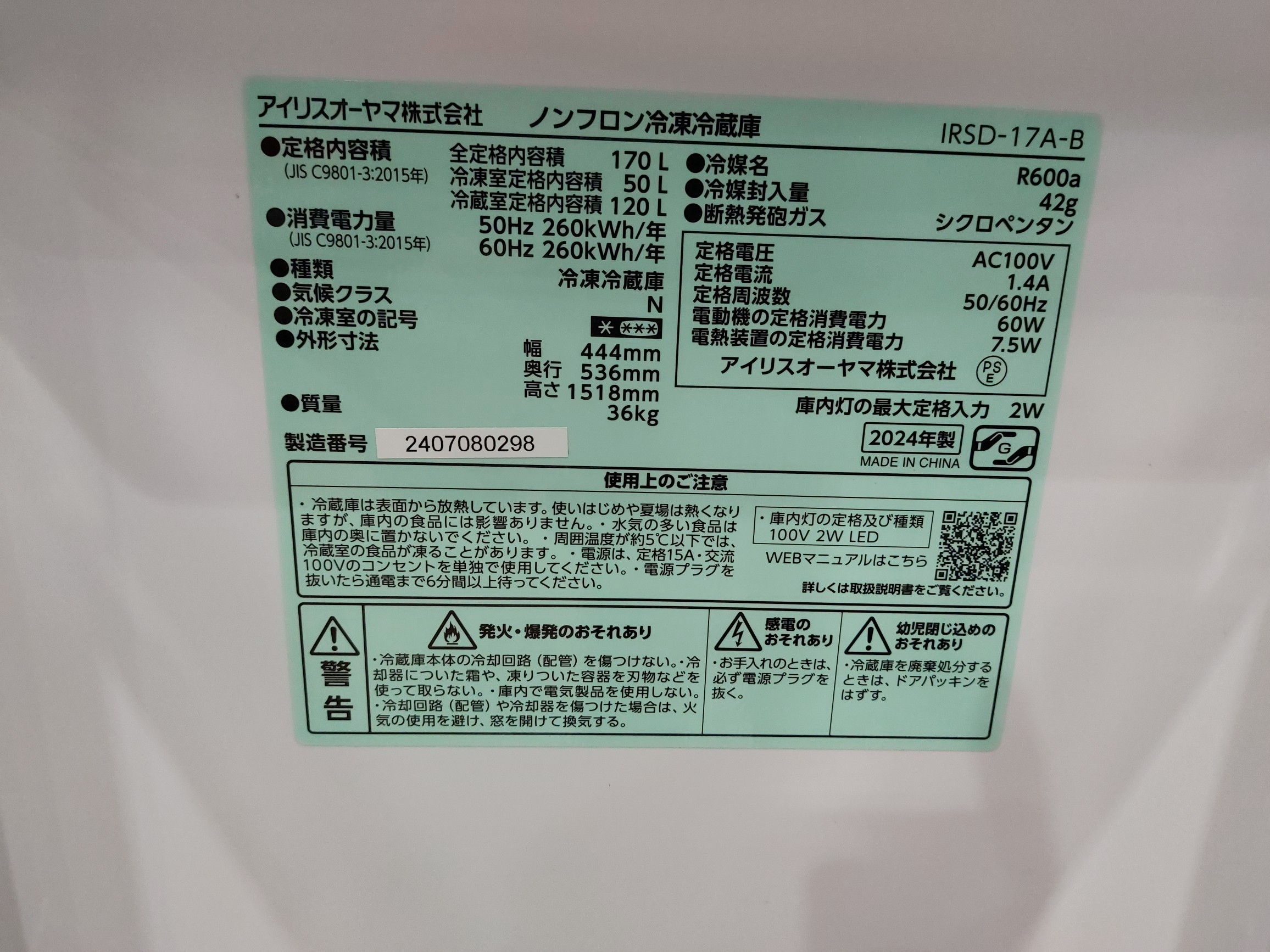 アイリスオーヤマ/2ドア/IRSD-17A-B