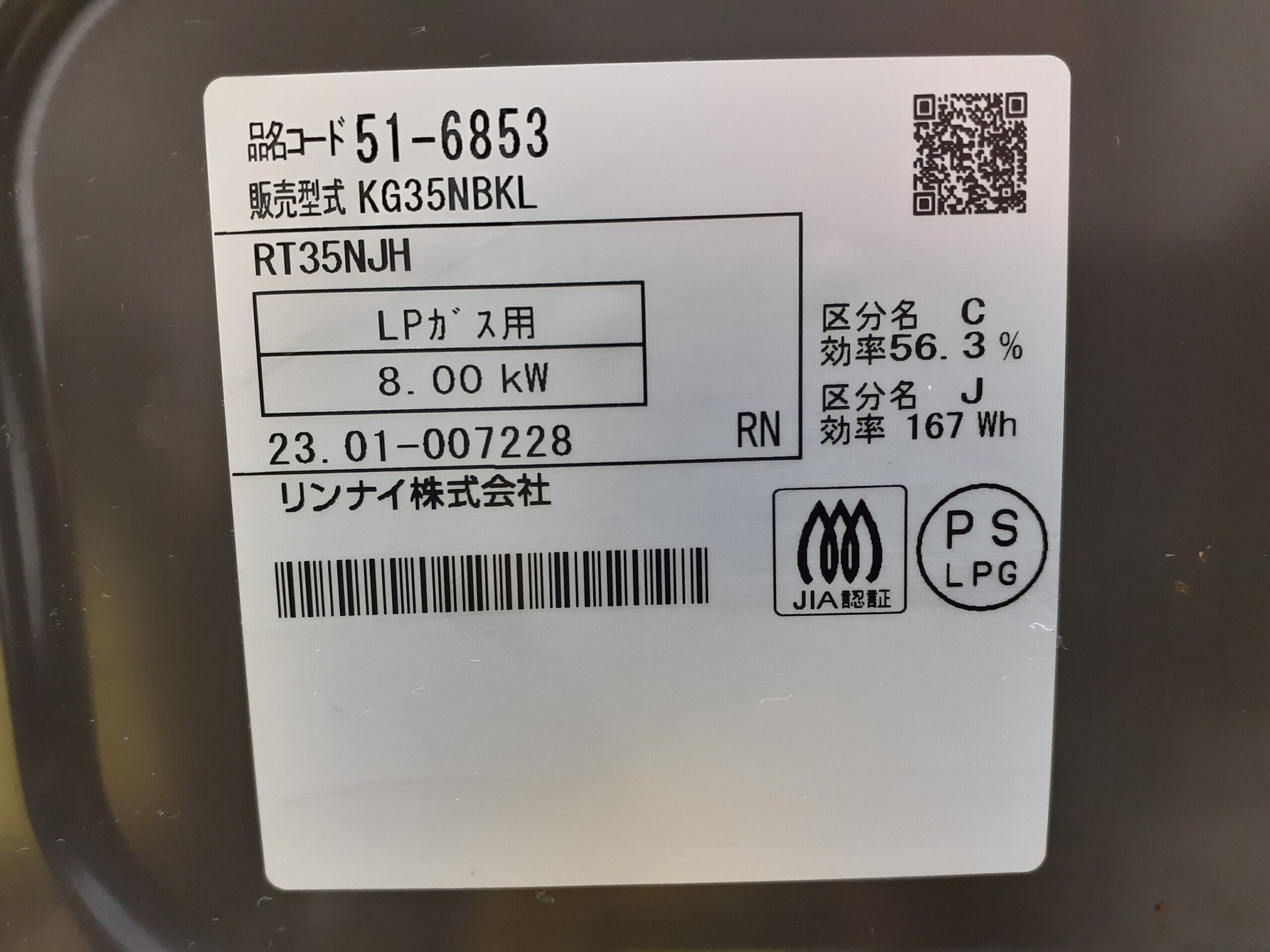 リンナイ/ガステーブル/ガスコンロ/プロパンガスLPG用 /KG35NBKL/左強化力