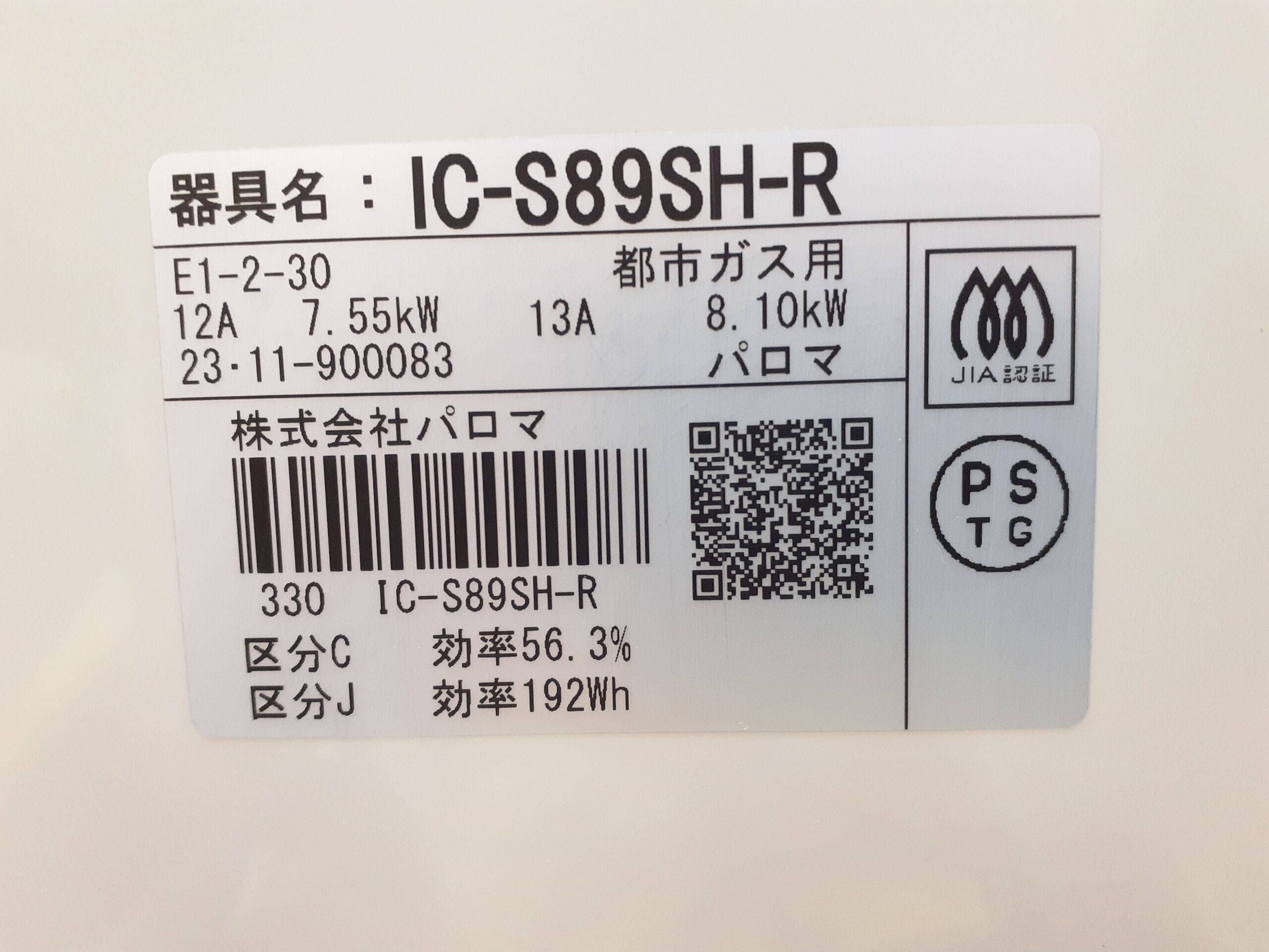 Paloma/パロマ/ガステーブル/ガスコンロ/都市ガス用 /IC-S89SH-R/右強化力