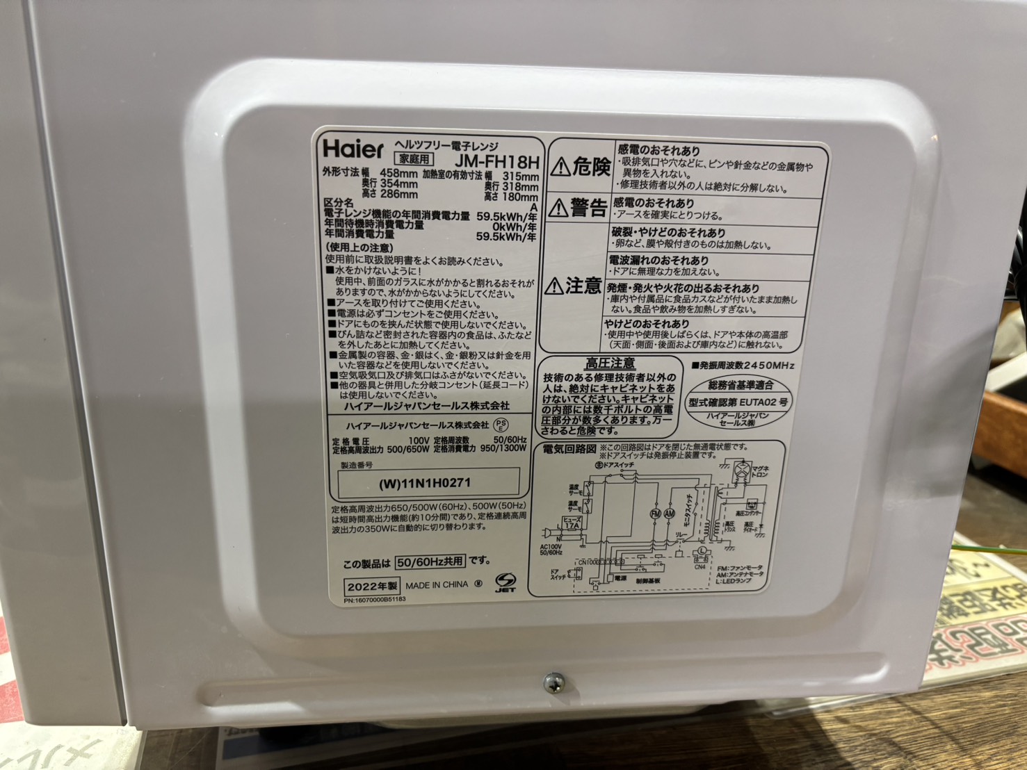 Haier|JM-FH18電子レンジ買取しました。