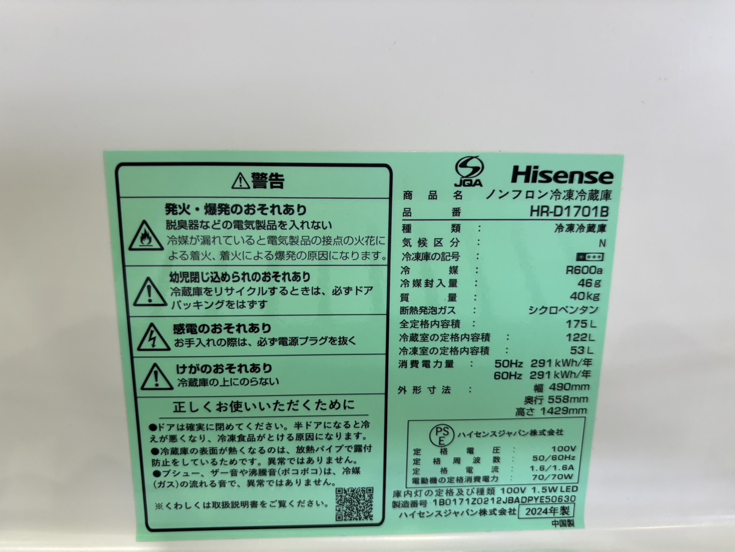 Hisense|2ドア冷蔵庫 HR-D1701B買取しました。