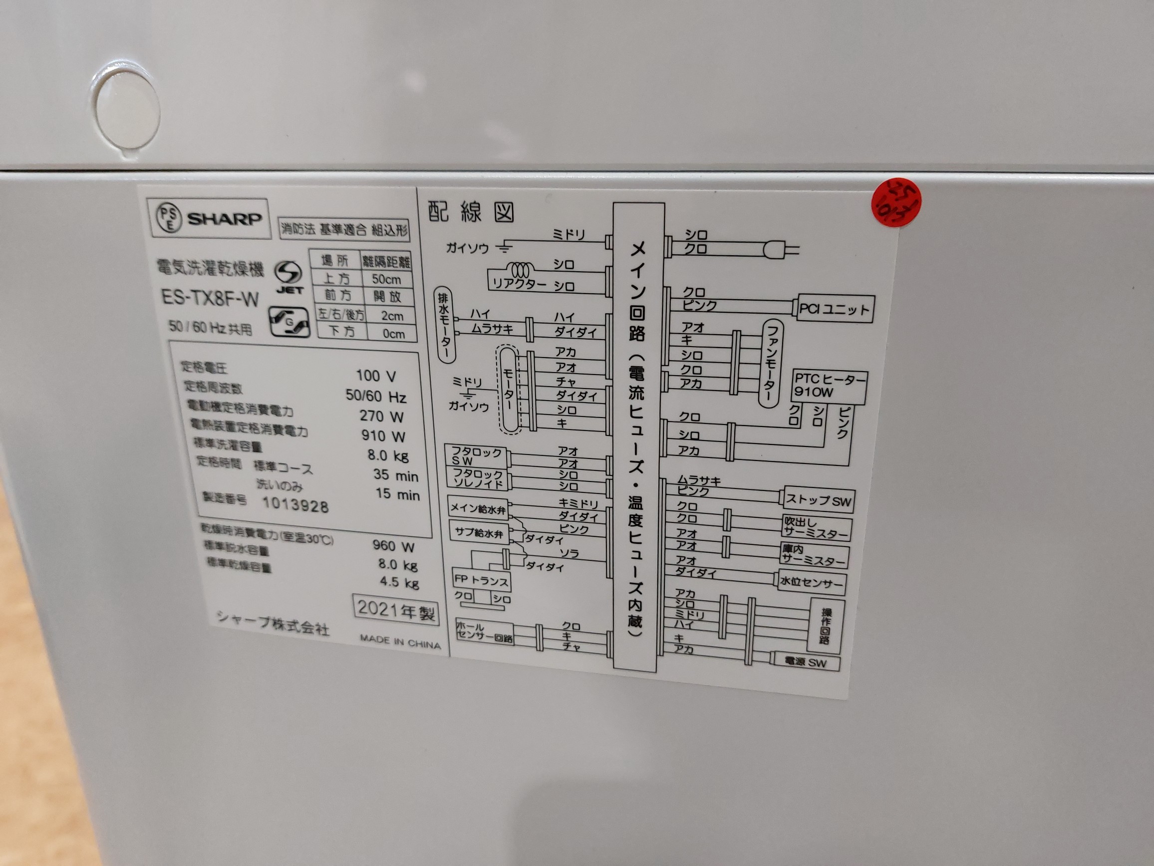 SHARP(シャープ)/縦型/ES-TX8F