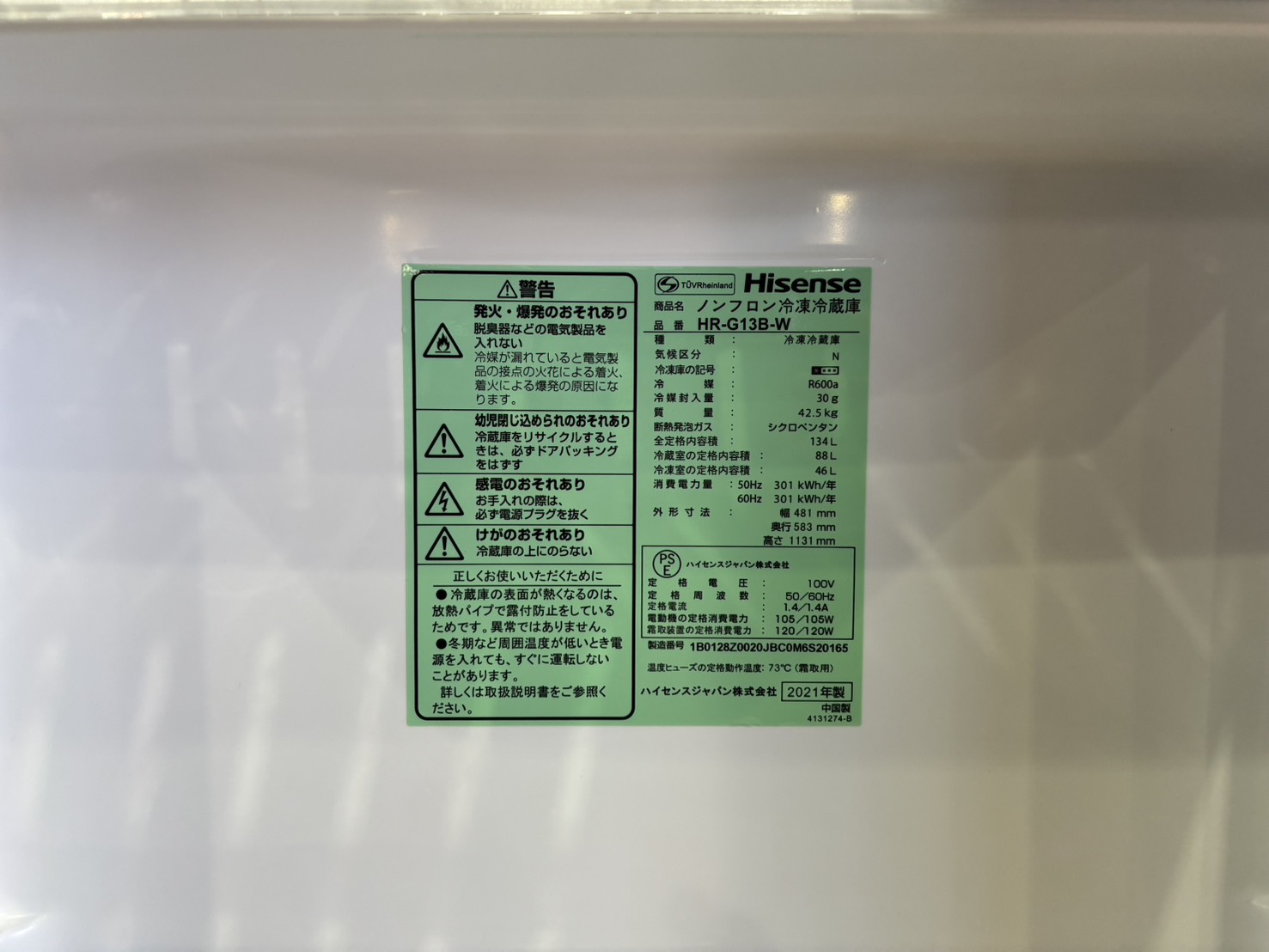 Hisense(ハイセンス)/2ドア/HR-G13B-W