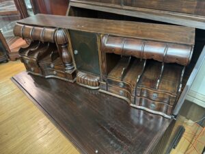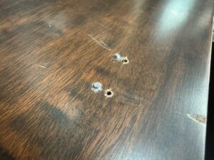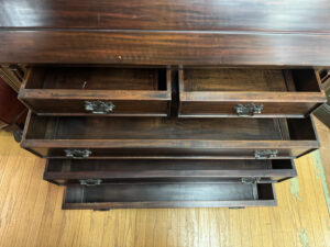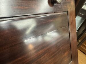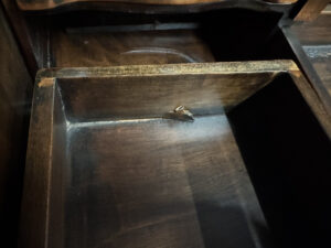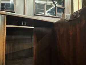 扉のローラーキャッチ(3個付いてます、ガラス扉と小引出ユニットの扉)は後付けされています。