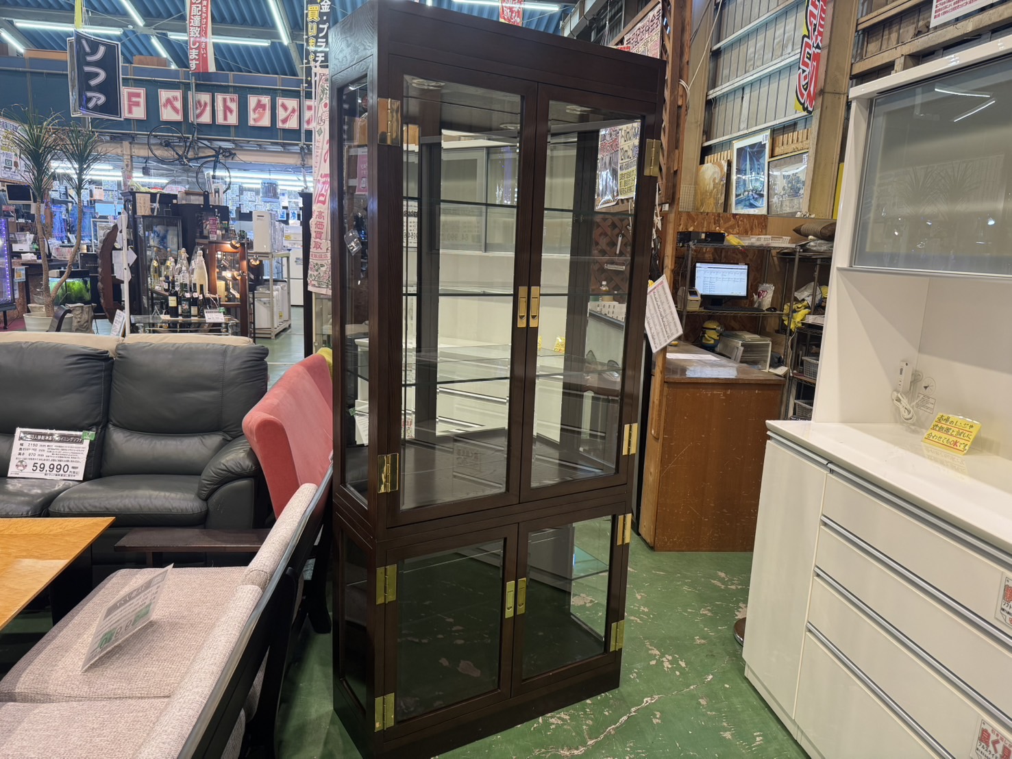 カリモクの最高級家具で同サイズの現行モデルキュリオケースは約76万円です。