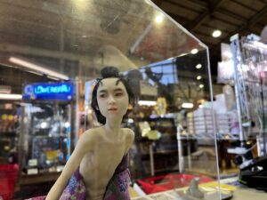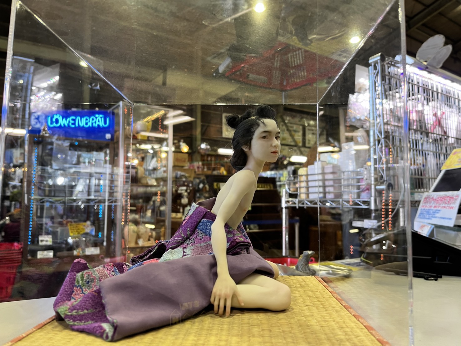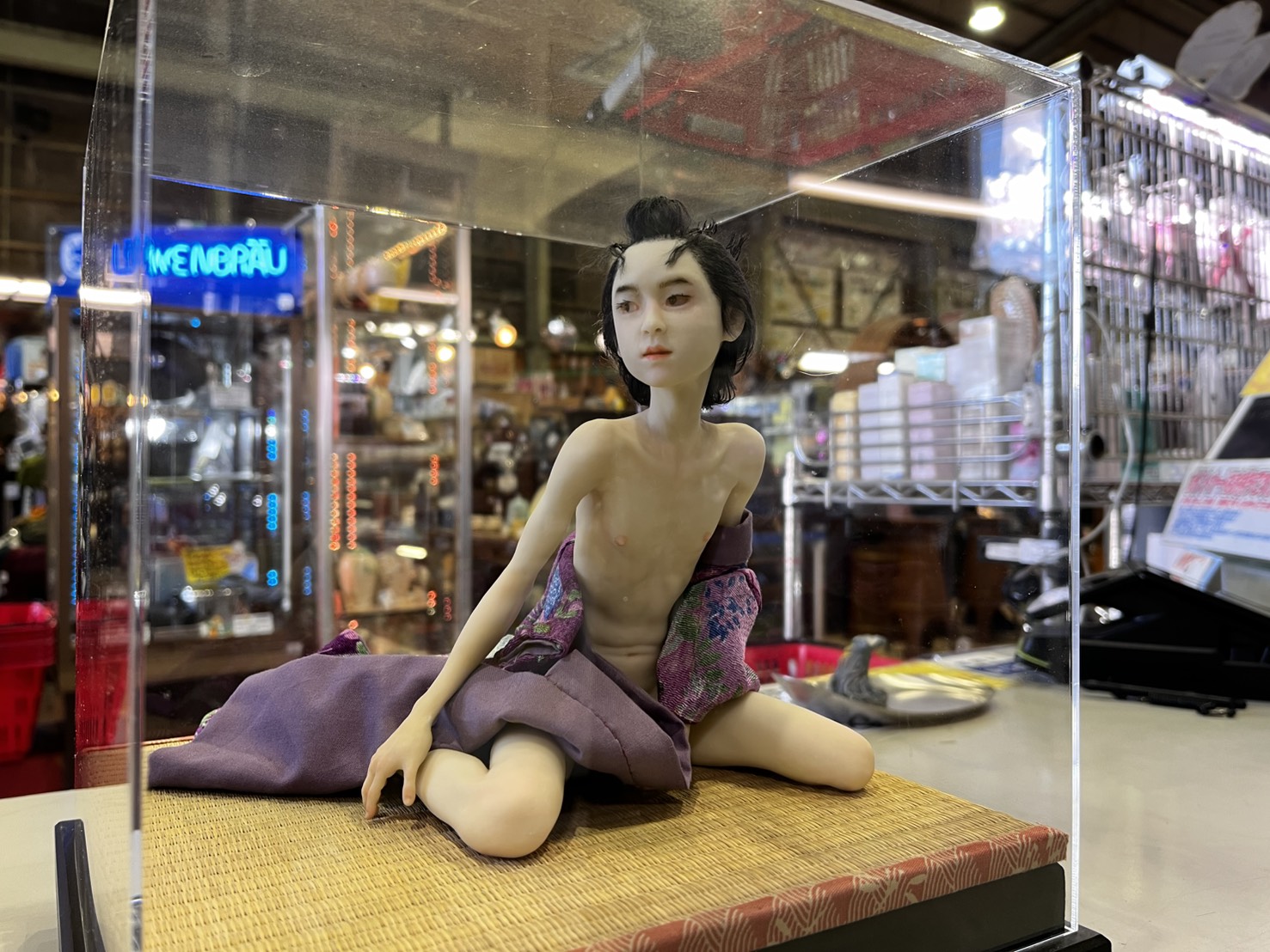 2009年に開催された個展「偏愛の彼方へ II」にて展示された樹脂粘土人形『陰子座姿』。