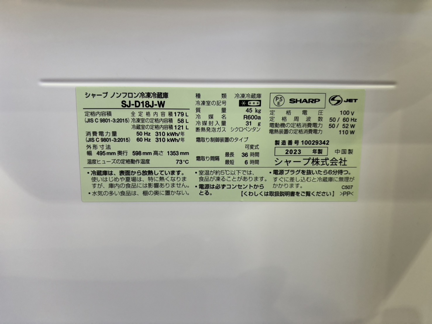 SHARP(シャープ)/2ドア/SJ-D18J-W