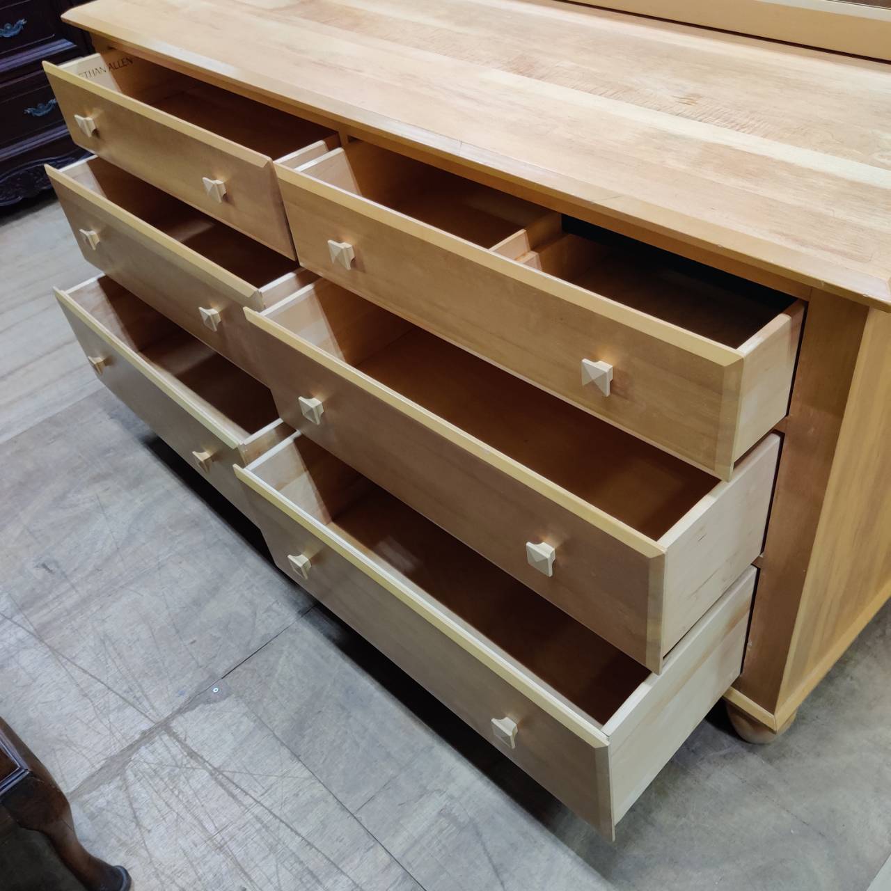Ethan-Allen(イーセンアーレン)-メープル材-3段6杯チェスト-大型ミラー-アメリカン-ディメンションズ(American-Dimensions)-リユース-柏-愛品倶楽部