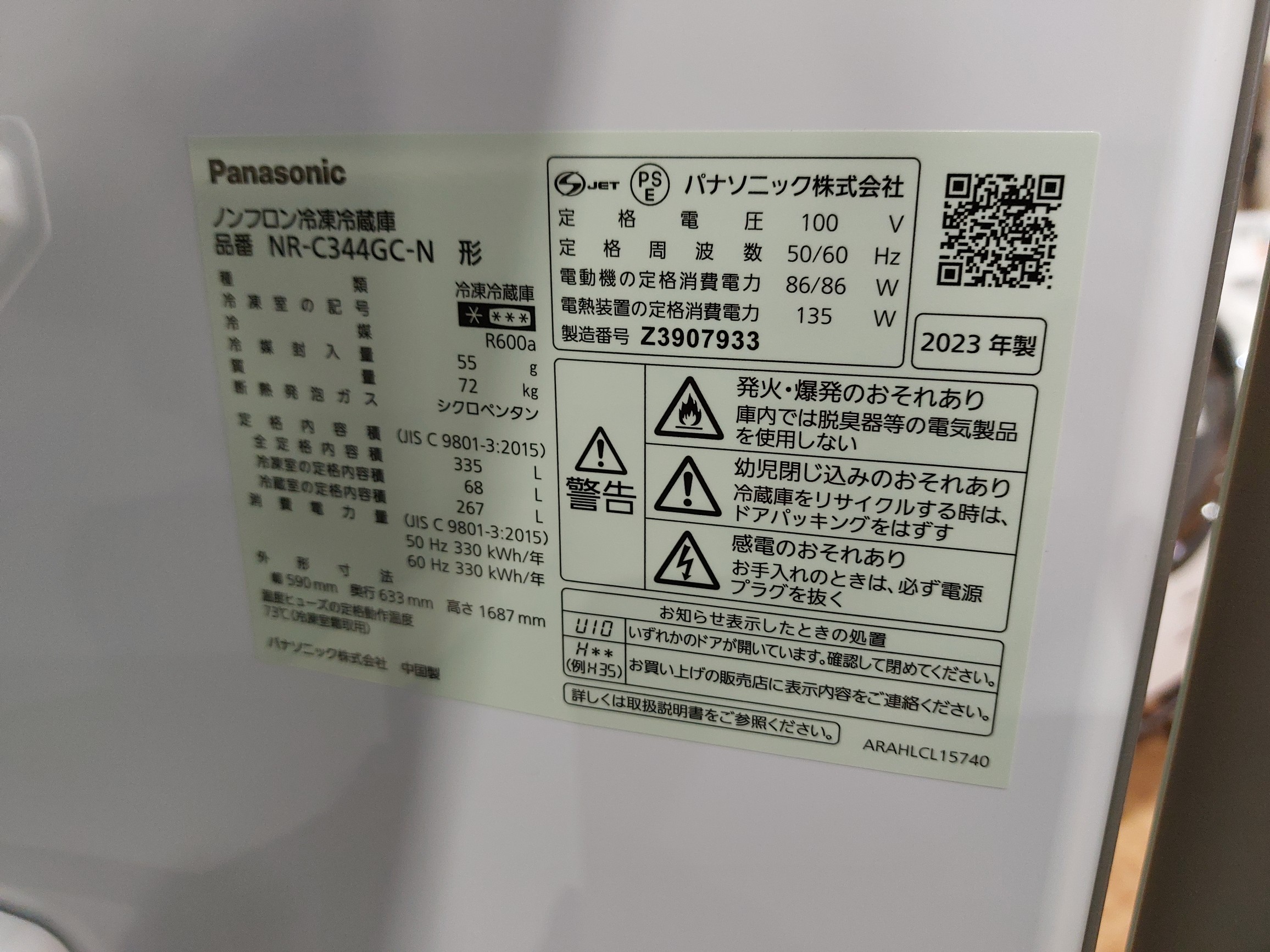 Panasonic(パナソニック)/3ドア/NR-C344GC-N