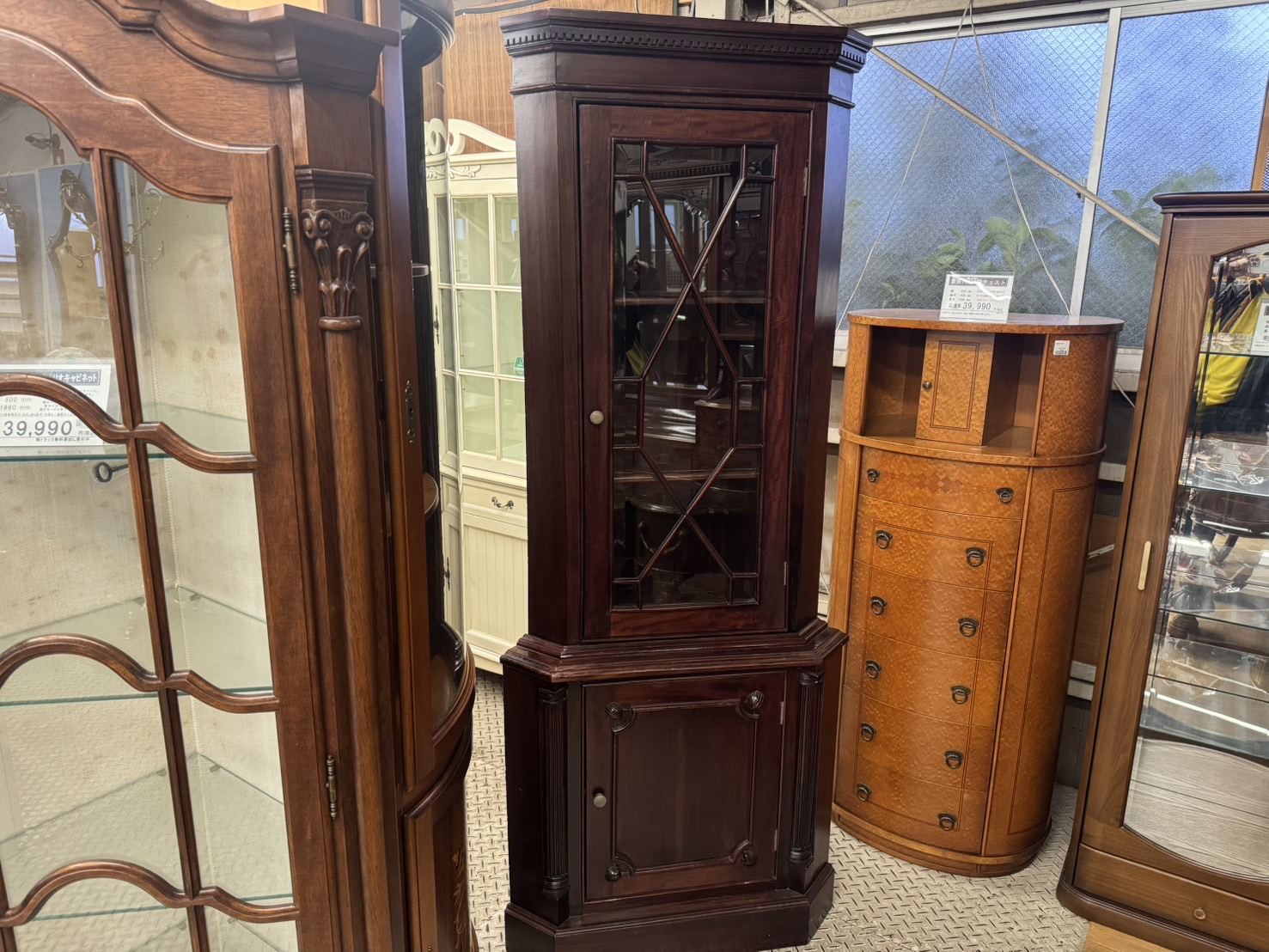 とても落ち着いた雰囲気が良いコーナーキャビネットで、おすすめです。