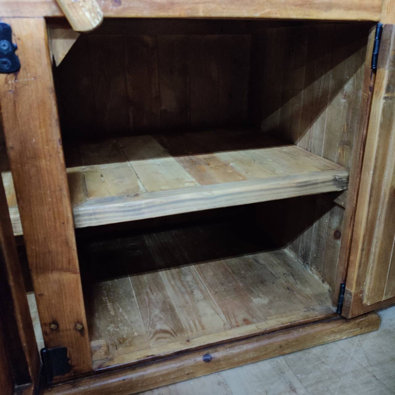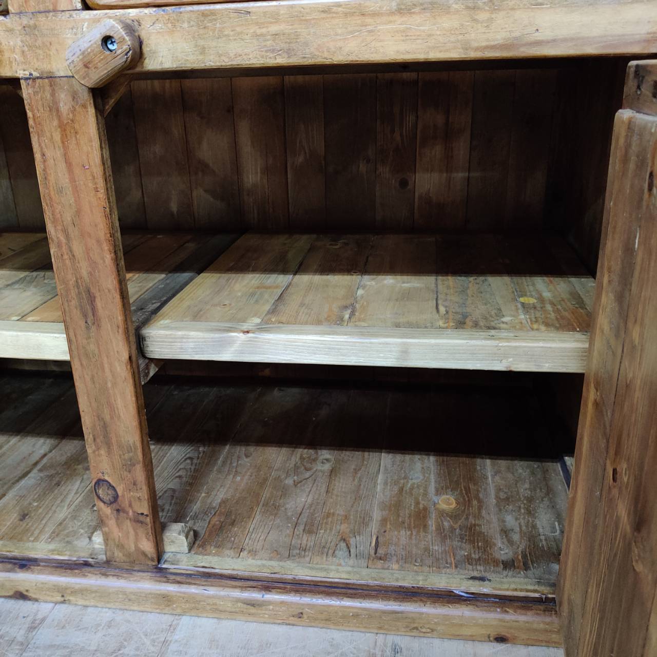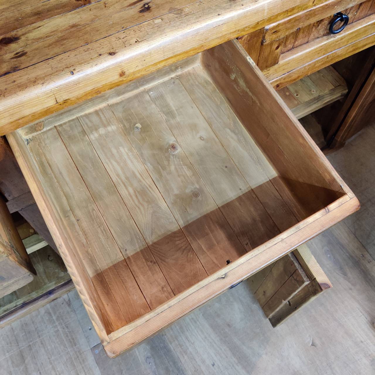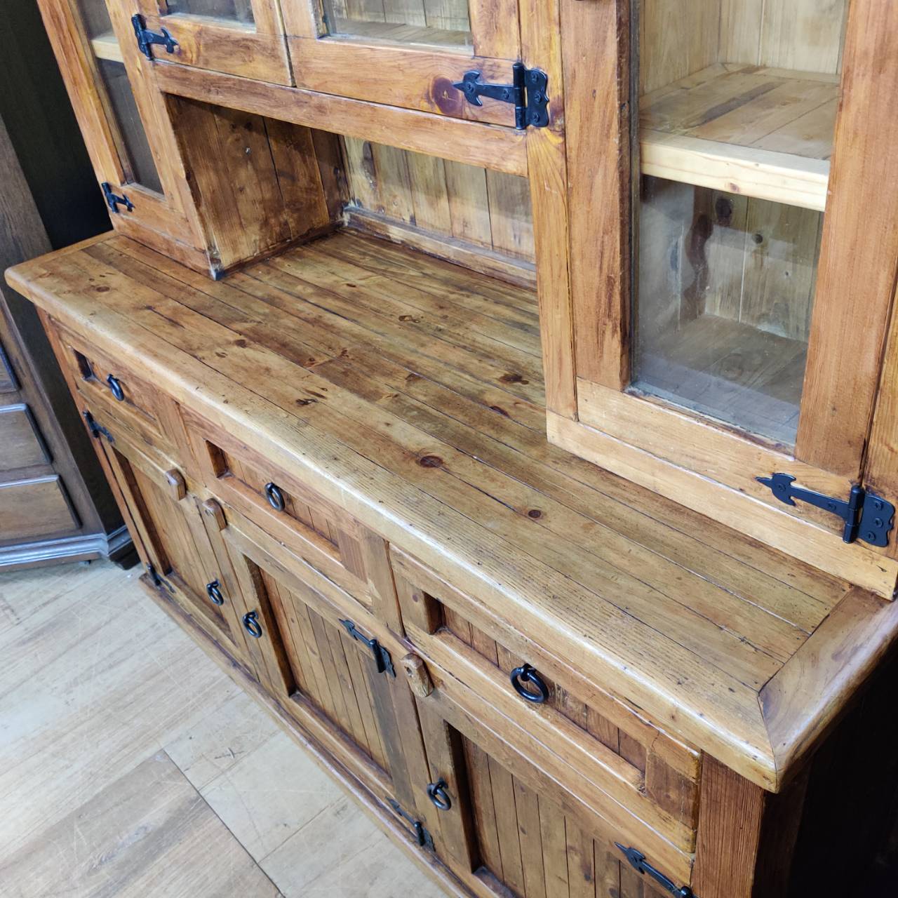 このシリーズの一番の良さは、新品の木材をわざと古く見せる「アンティーク加工」ではなく、本物の「古材(リサイクルパイン)」を使っているところ。