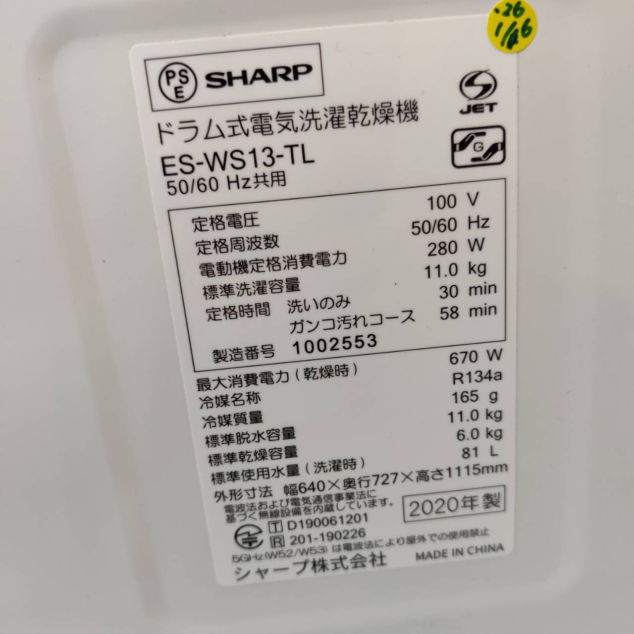 洗濯11.0kg/乾燥6.0kg、左開き