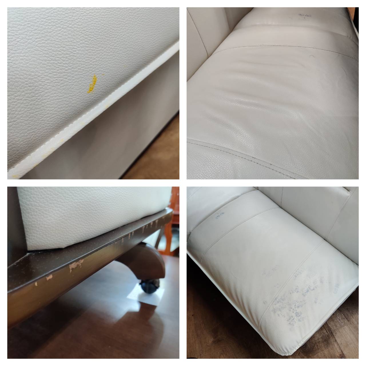 ソファー座面硬くなっている部分、ペン跡、下回りにたるみあり。その他各所キズ、ヨゴレあり。