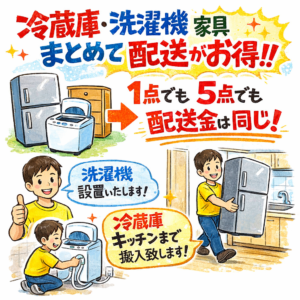 ◆配送から設置まで一括対応。面倒な設置作業も、その場ですぐに使える状態まで整えます。有料配送・設置無料!冷蔵庫・洗濯機はサービスで設置致します。