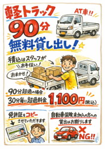 ➡自社配送|軽トラック貸出|ご案内はこちら