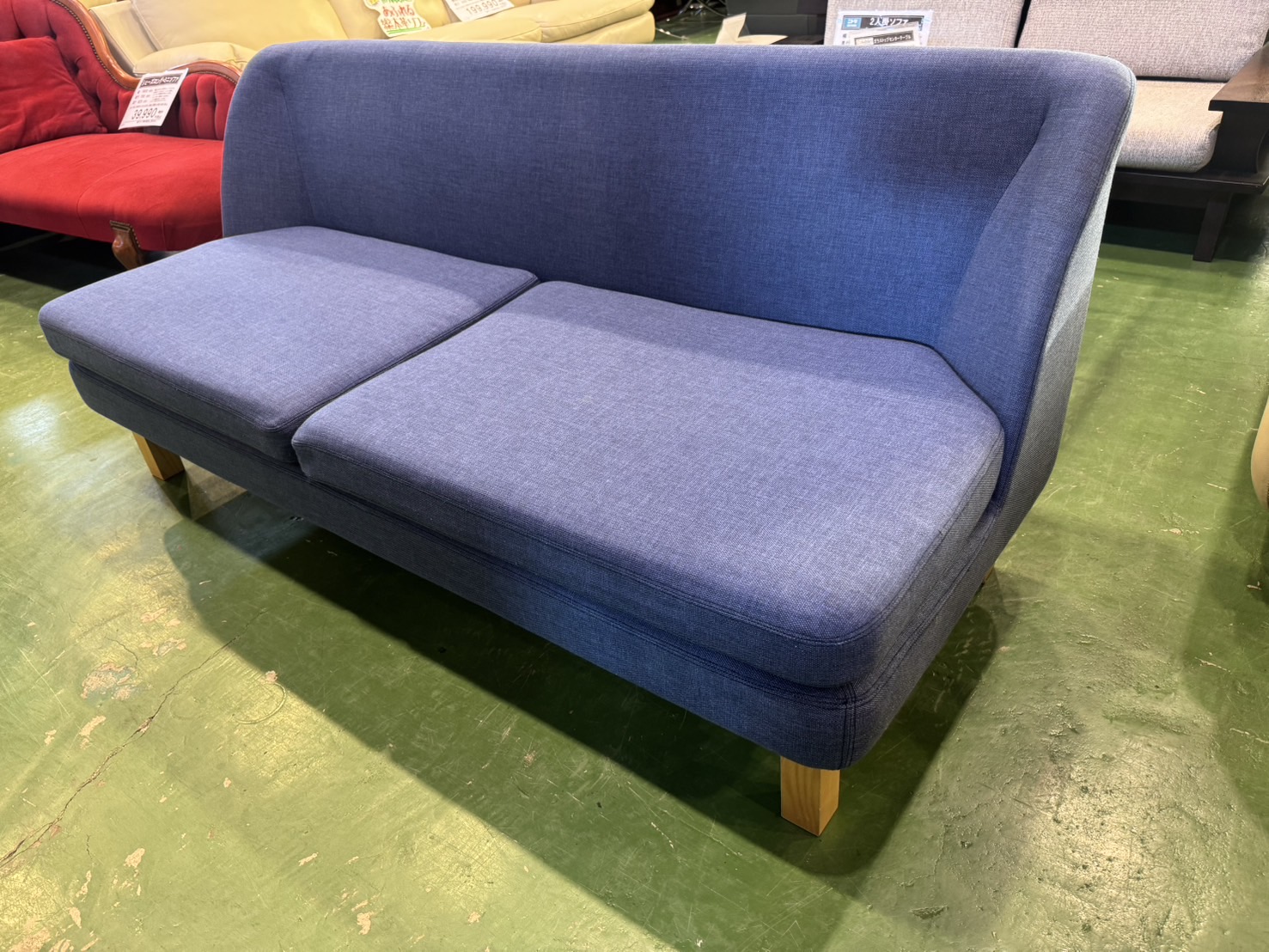 アームがないため、コンパクトながらも広く座面を使えて3人で座れるくらいのゆとりがあります。