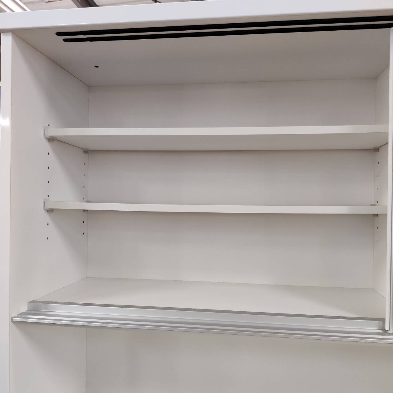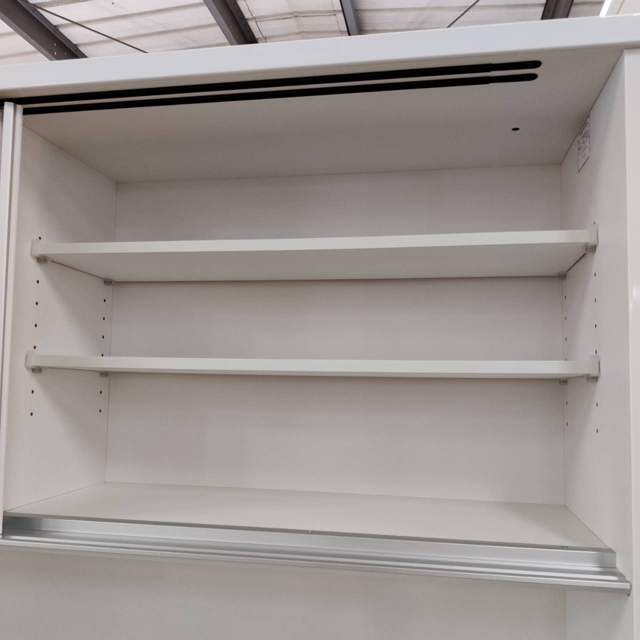 スライド扉を開けると、棚板の高さも自由に変えられるので、お気に入りの食器やストックの食材もたっぷり、きれいに収まっちゃいます♪