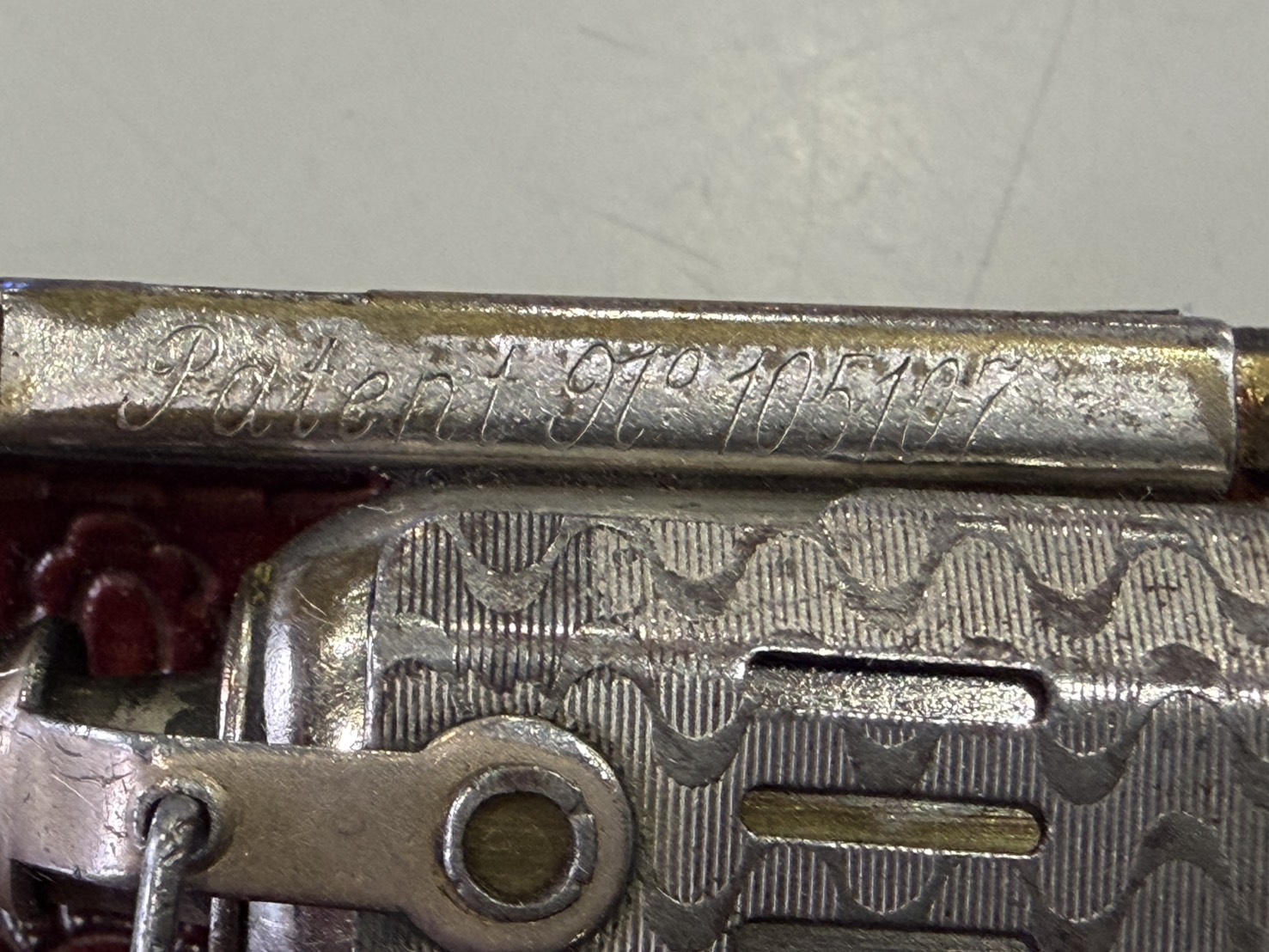本品は「PAT.105107」刻印が入る、当時の設計思想を色濃く残した個体。
