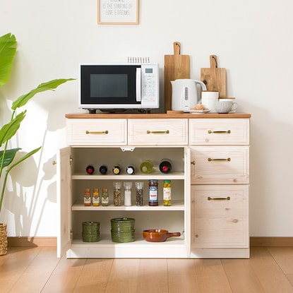 扉、前板はパイン材使用しており、木目が美しい仕上がりです。