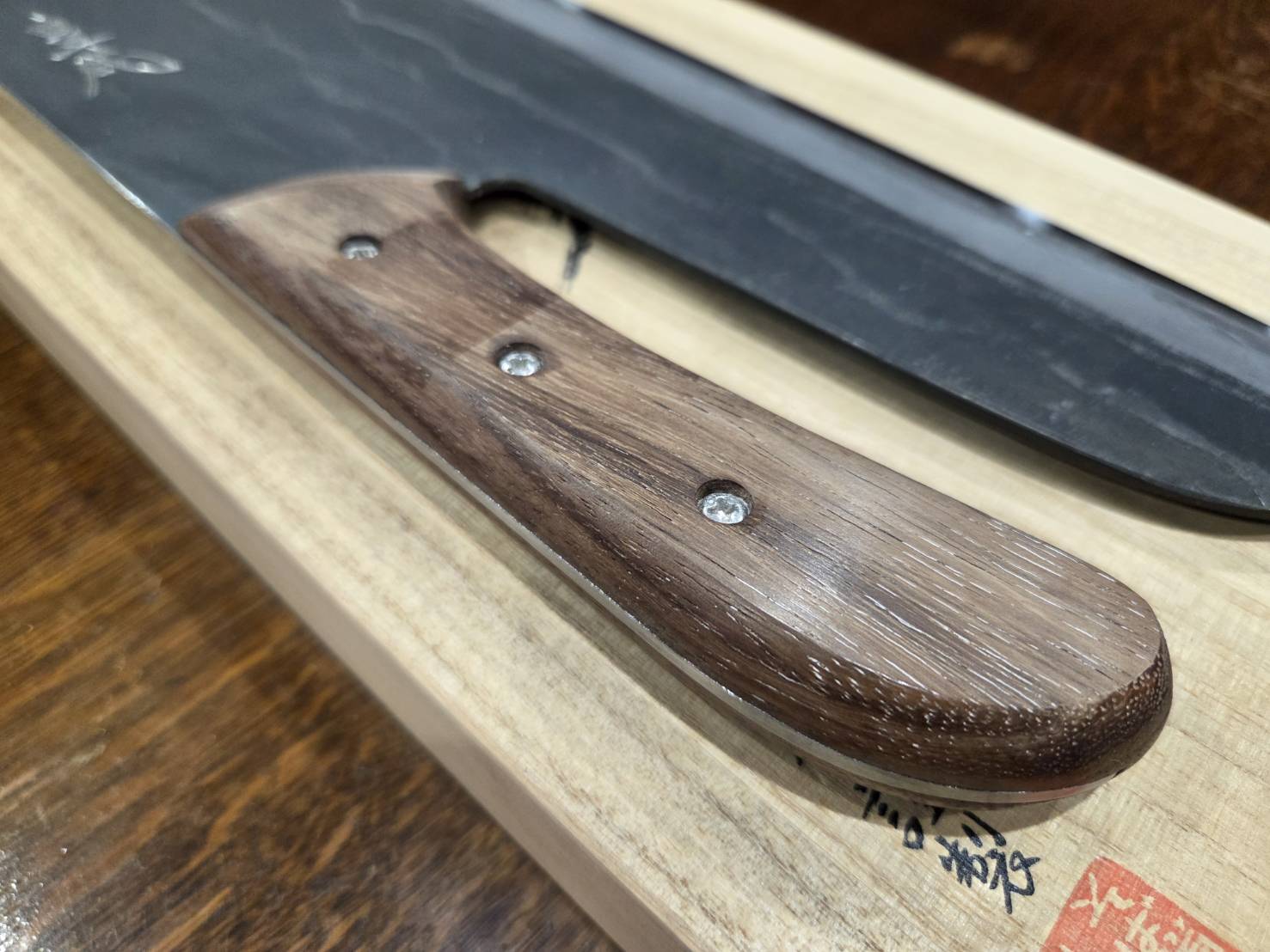 刃先は、切れ味だけを優先するのではなく、蕎麦を切ることだけを想定した、絶妙な角度と切れ味。まな板に食い込すぎず、スライドしやすいため、長く使用しても切れ味が落ちない。