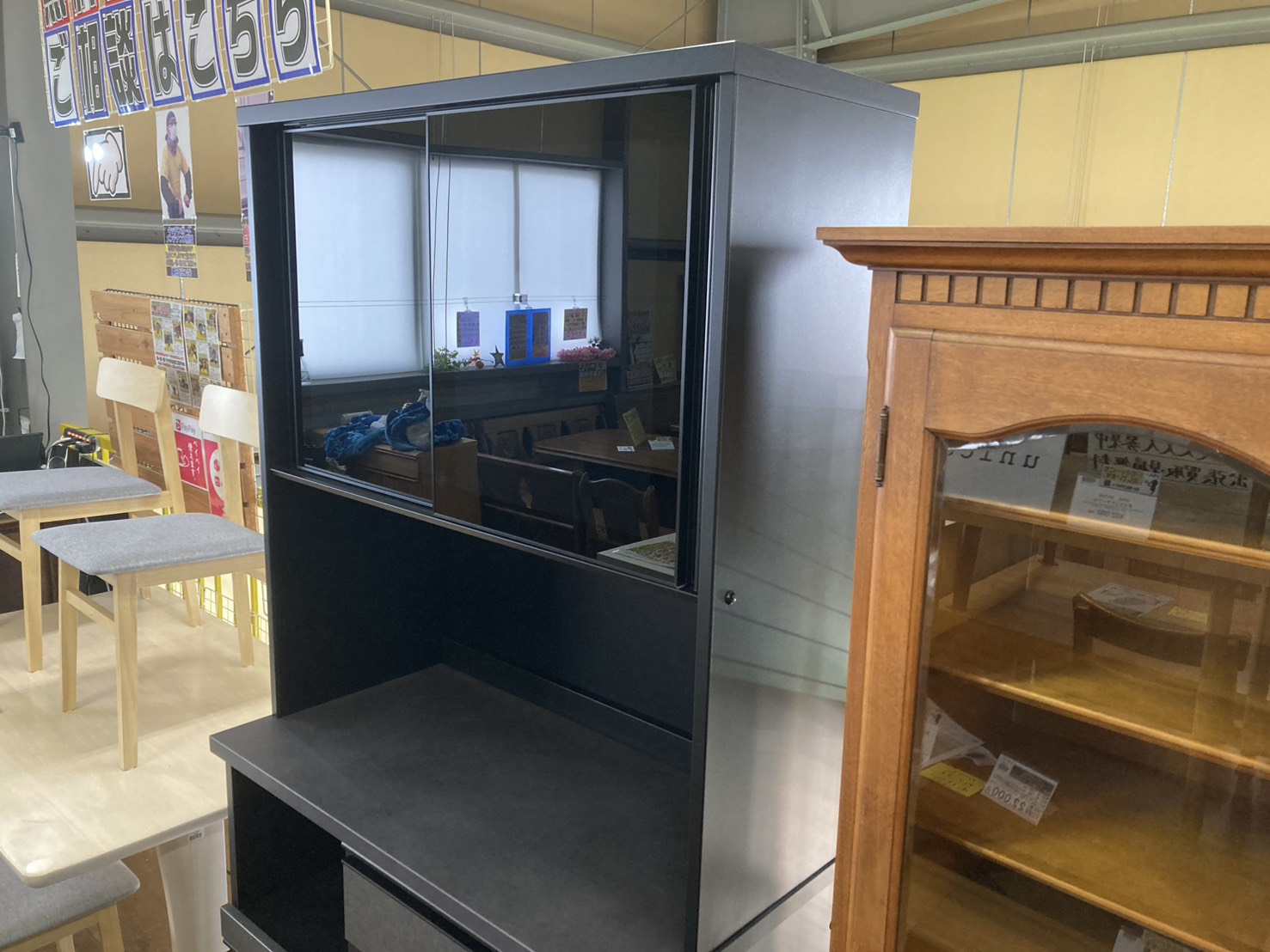 流山市で出張買取したニトリ製キッチンボード「リガーレ」の黒色モデル