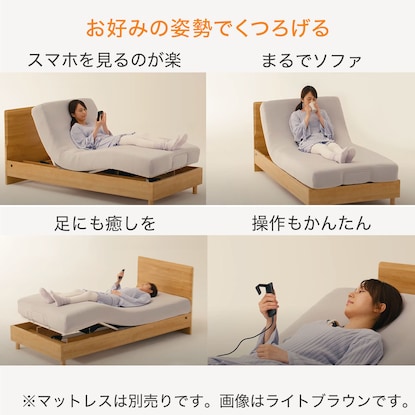マットレスは「Nスリープ/Ease5」ポケットコイルを横に連結したことで、電動ベッドの動きにぴったりと追従し、カバーを外して洗えるので、衛生的に使えます。