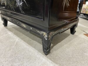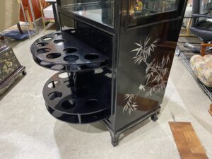 前面から側面まで螺鈿細工の装飾が煌びやかなキャビネット型ワインラック。