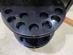 両側面がガラス扉となっておりワインラック部は回転式となっています。
