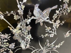 美しく虹色に輝く螺鈿細工からは、思わず目を惹かれる様な華やかな雰囲気が感じられます。