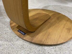 テーブルの脚部は、積層曲木により、C字型にデザインされています。これにより、チェアやソファに差し込んで使うことができます。