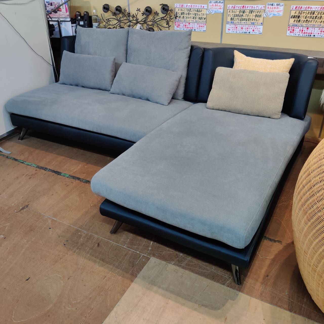 肘のない2人用ソファとシェーズロングソファの組み合わせ。