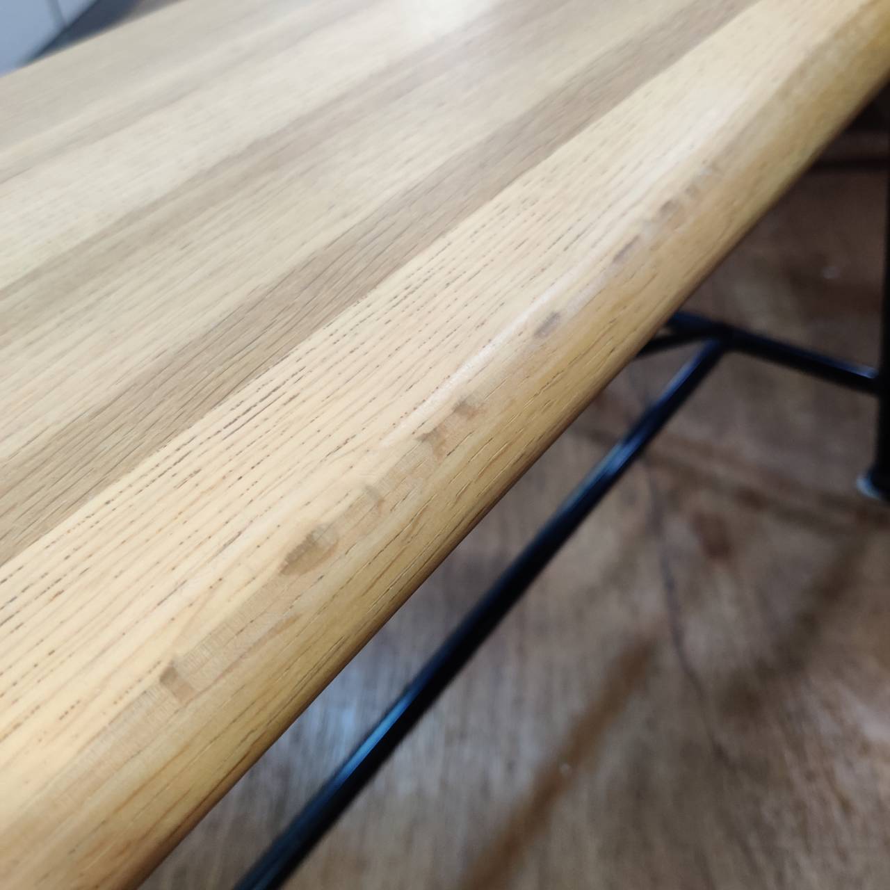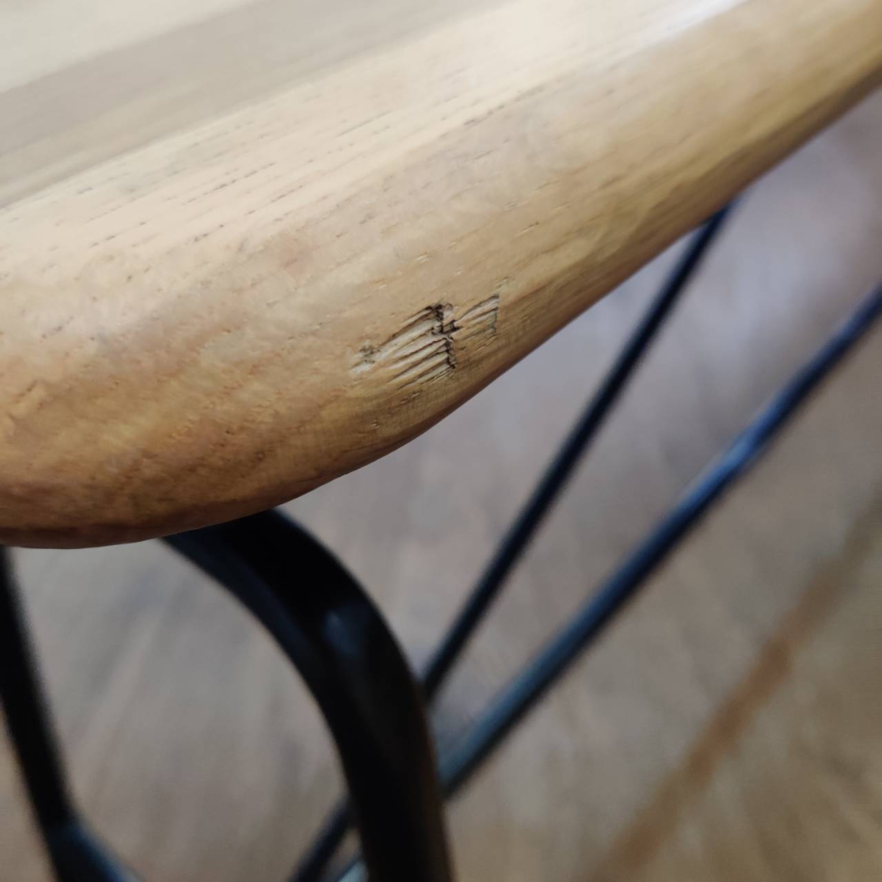 座面にはオーク無垢材を使用しており、木の自然な節や木目が温かみをプラス♪