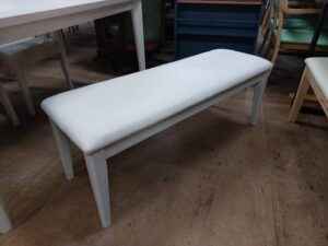 ベンチとチェアの座面は合成皮革張りで、汚れもサッと拭けるのでお手入れラクラク。