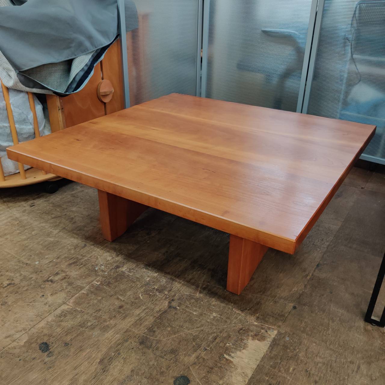 ぶ厚い無垢の天板がまるで空間に浮いているような、モダンなデザインの座卓です。
