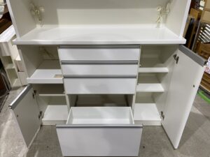 引出し全段フルオープン仕様で、ソフトクローズ機能付きなので小さいお子さんのいる家庭でも安心してご使用頂けます。