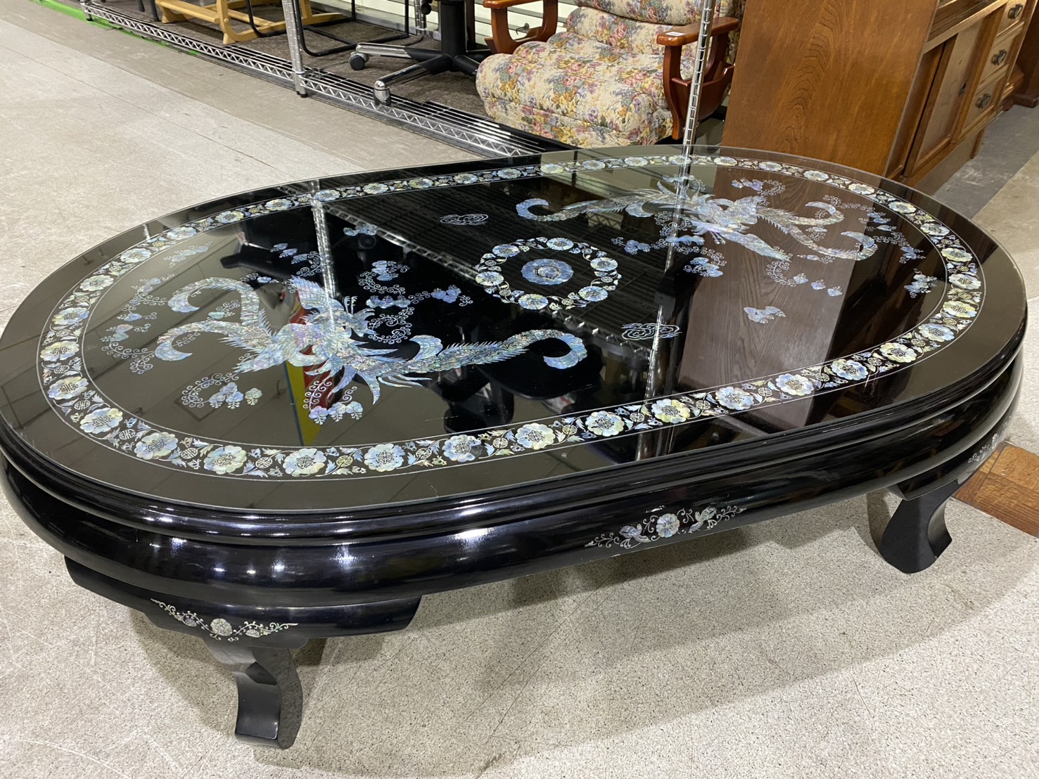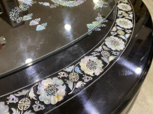螺鈿細工|花鳥柄|ガラス天板付|座卓
