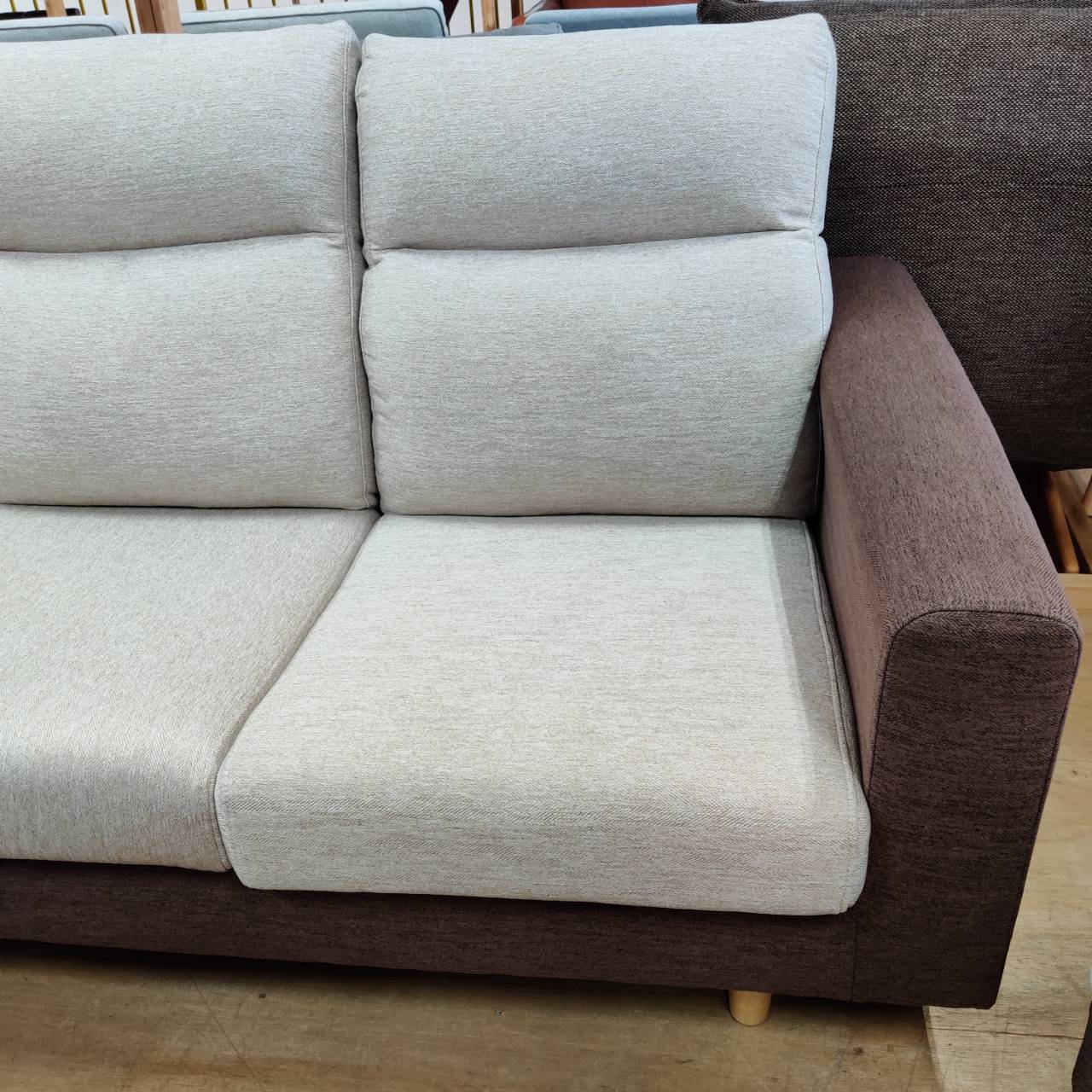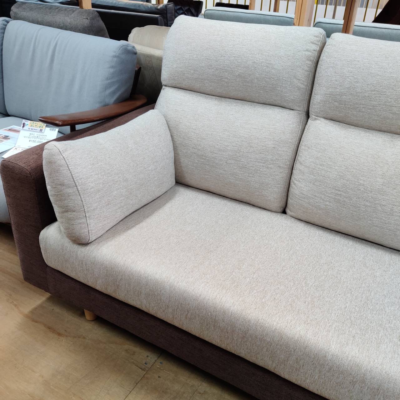 本体は落ち着いたブラウンカラー、座面と背もたれには明るいベージュのファブリックを採用したツートンカラー仕様で、どんなお部屋にも馴染みやすいデザイン。