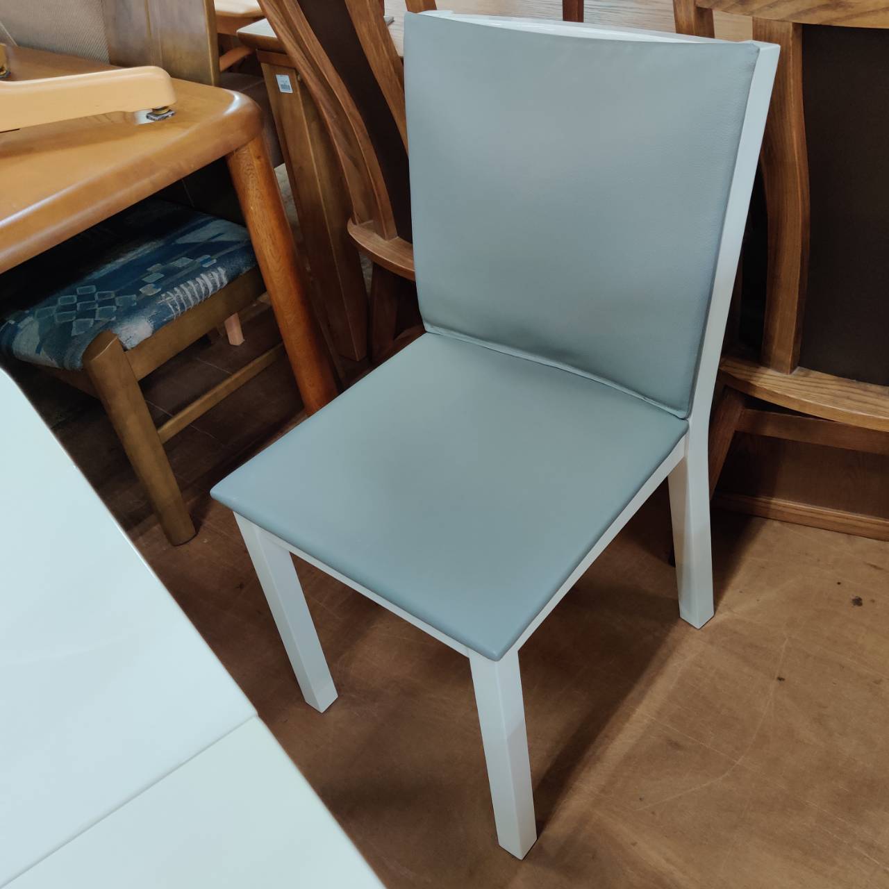 椅子はグレーのクッション付き背もたれで座り心地が良く、シンプルかつモダンなデザインが魅力。