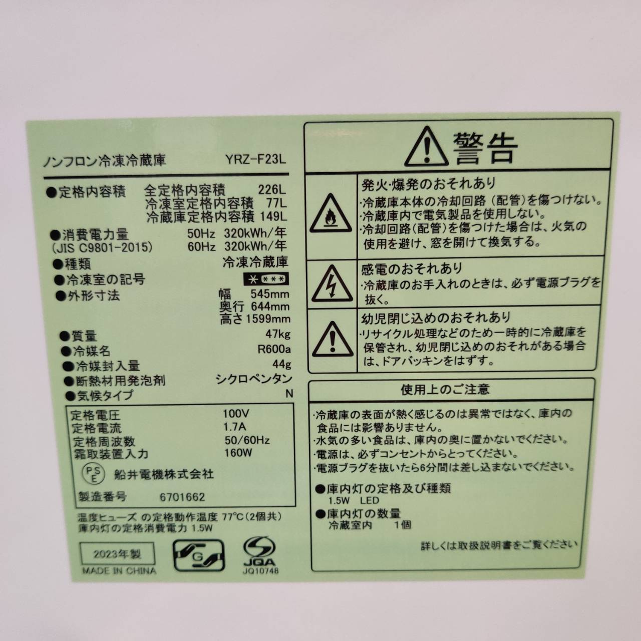 YAMADA ヤマダ 2023年製 226L 2ドア 冷凍冷蔵庫 YRZ-F23L REFAGE 船井電機 販売中! 愛品倶楽部柏店