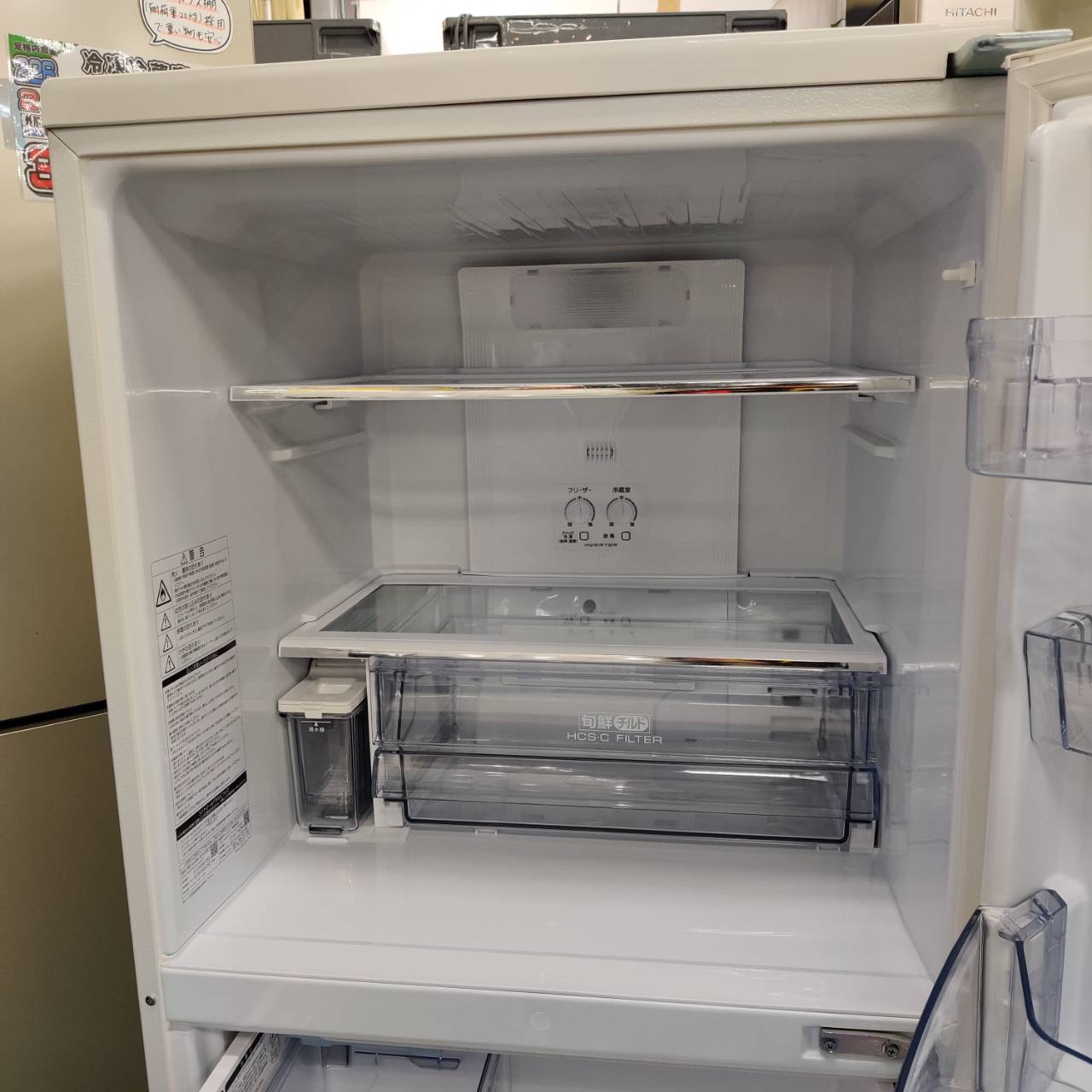 ・冷蔵室:全段強化処理ガラス棚、高さ調節棚、LED庫内灯。